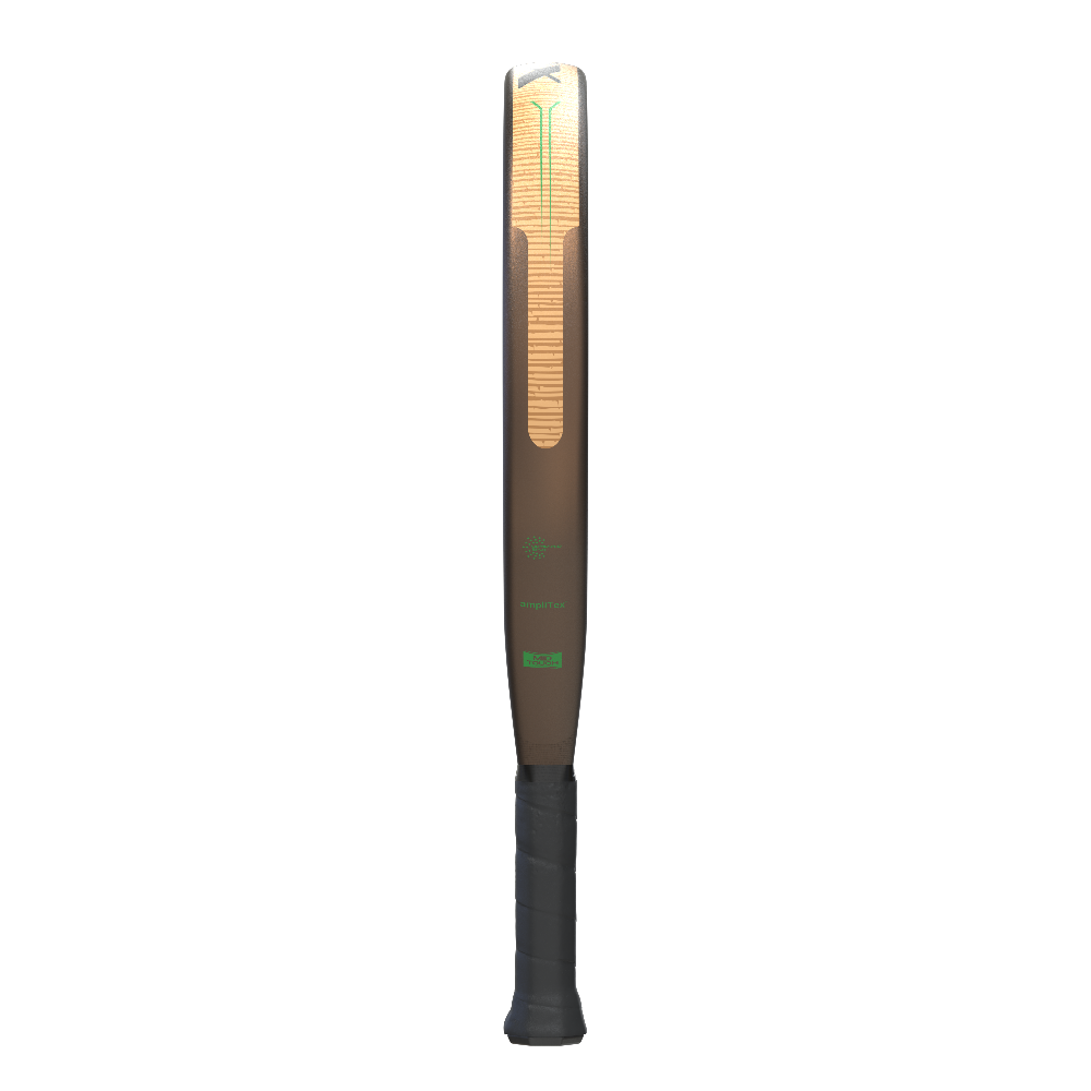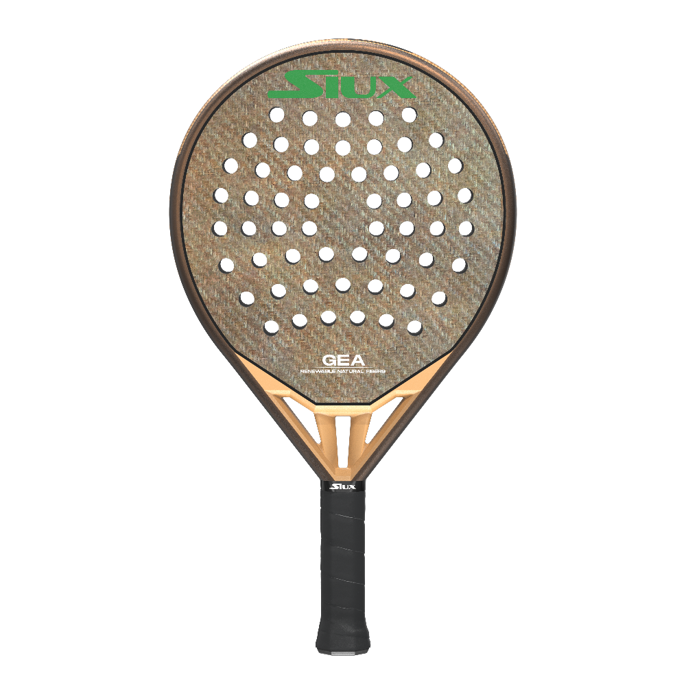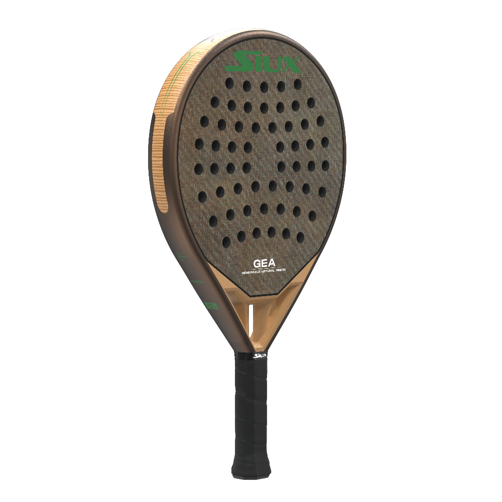 The Siux Gea racket, designed for intermediate players seeking control and precision, features a round shape and low balance for exceptional maneuverability. Crafted with eco-friendly ampliTexTM 3K flax fiber faces, it offers a flexible, medium feel for lightweight, elastic shots with enhanced ball speed. The EVA Soft High Recovery core ensures rapid rebound and stability, while the Optimized Spot technology expands the sweet spot for consistent accuracy across the court. With a sleek, nature-inspired design, the Gea delivers a versatile, sustainable option for players aiming to elevate their technical game.