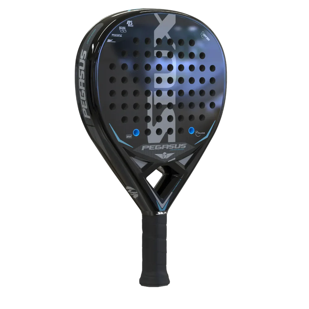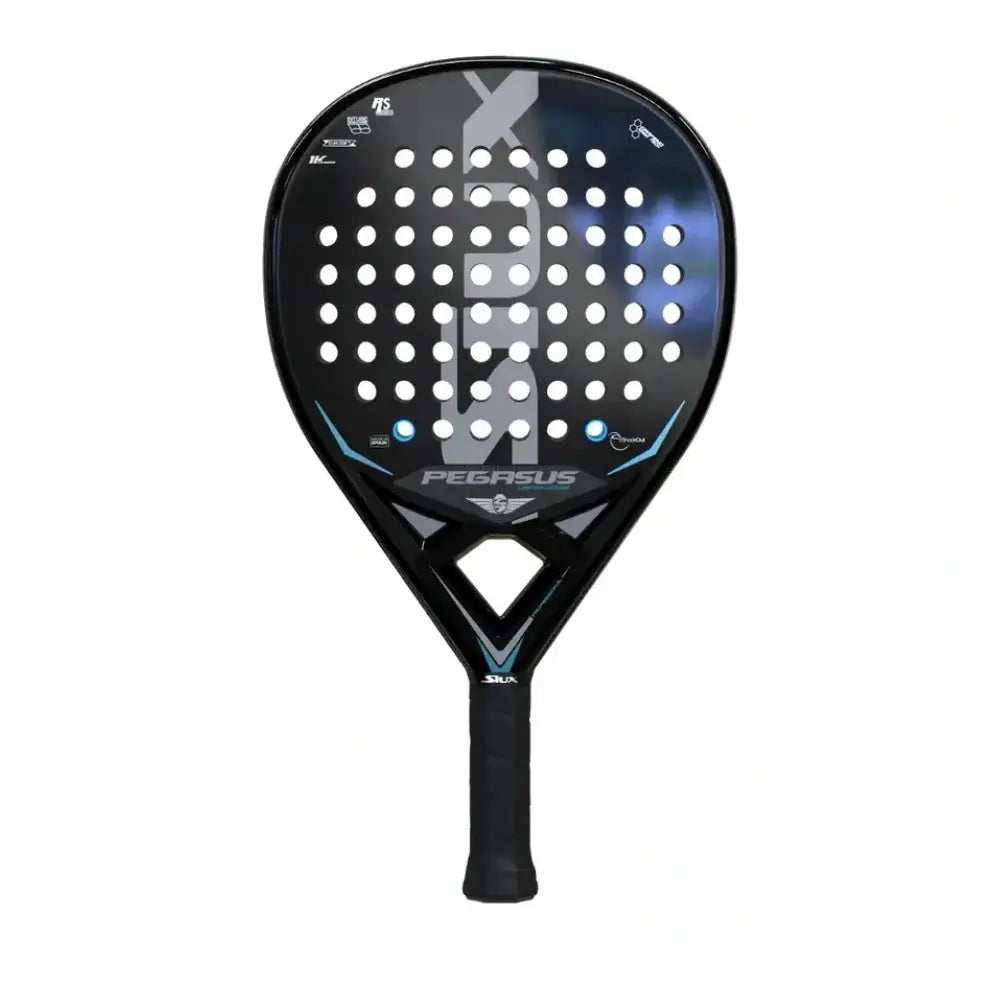 The Siux Pegasus 1K Limited Edition padel racket, crafted for advanced players seeking exceptional performance, features a teardrop shape and medium balance which make for a hybrid racket that performs exceptionally well with overhead shots. Its 1K carbon and graphene faces deliver a firm, responsive feel, while the EVA Soft High Recovery core ensures rapid rebound and enhanced precision. Equipped with an aramid anti-vibration system and a comfortable grip, this racket offers stability and comfort during intense play.