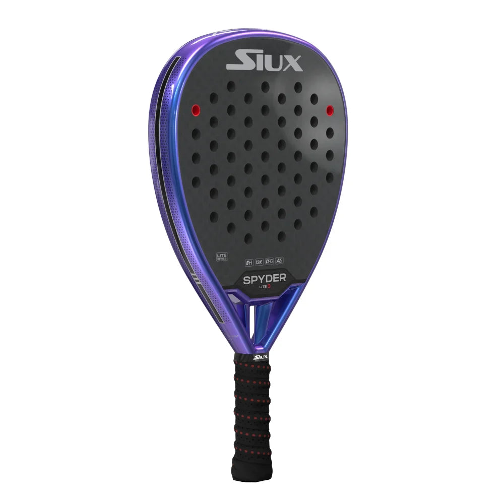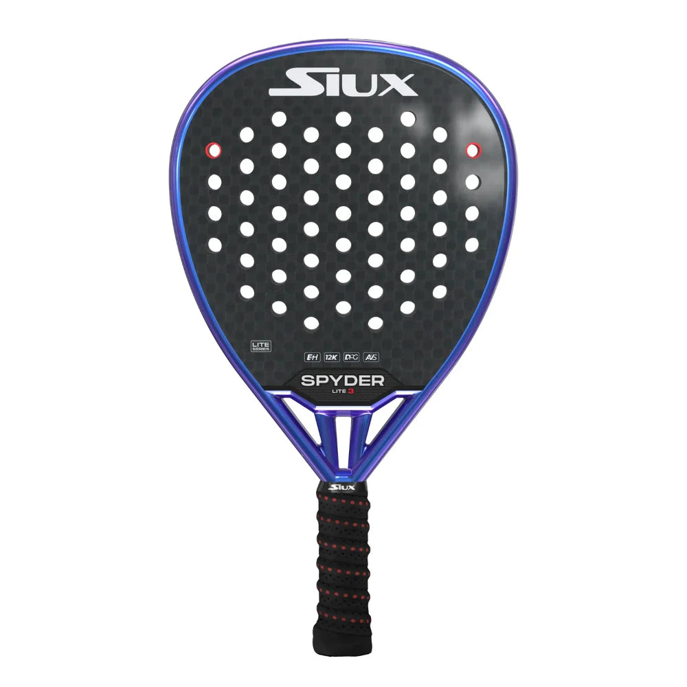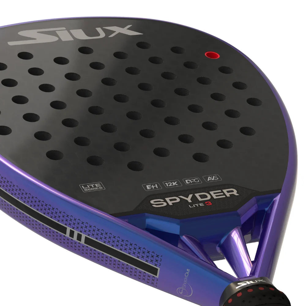 The Siux Spyder Lite 3 Hard padel racket, crafted for advanced players craving power and precision, boasts a diamond shape and high balance, making it ideal for aggressive, offensive players and smashers. Its 12K carbon surface delivers a firm, explosive response with every shot. Lightweight, durable, and finished with an elegant glossy shine, this racket ensures excellent maneuverability without compromising power, perfect for those who thrive on a bold, impactful game.