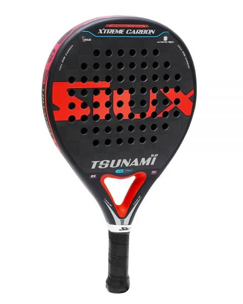 The Siux Tsunami 5.0 24K padel racket is the evolution of the iconic red Tsunami. The racket has enhanced control as a result of incorporating 24K carbon in the faces.
